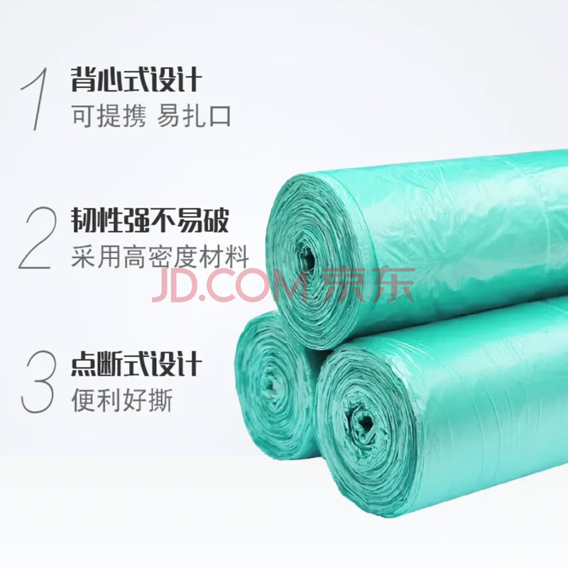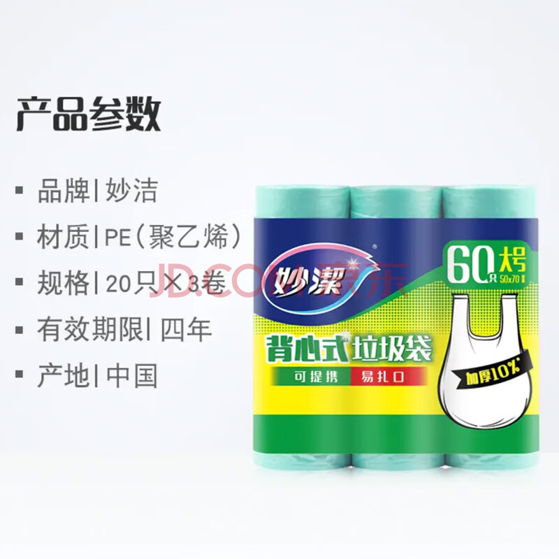 商品相册:妙洁背心垃圾袋青色50*70cm60只单面0.8丝点断式大号第