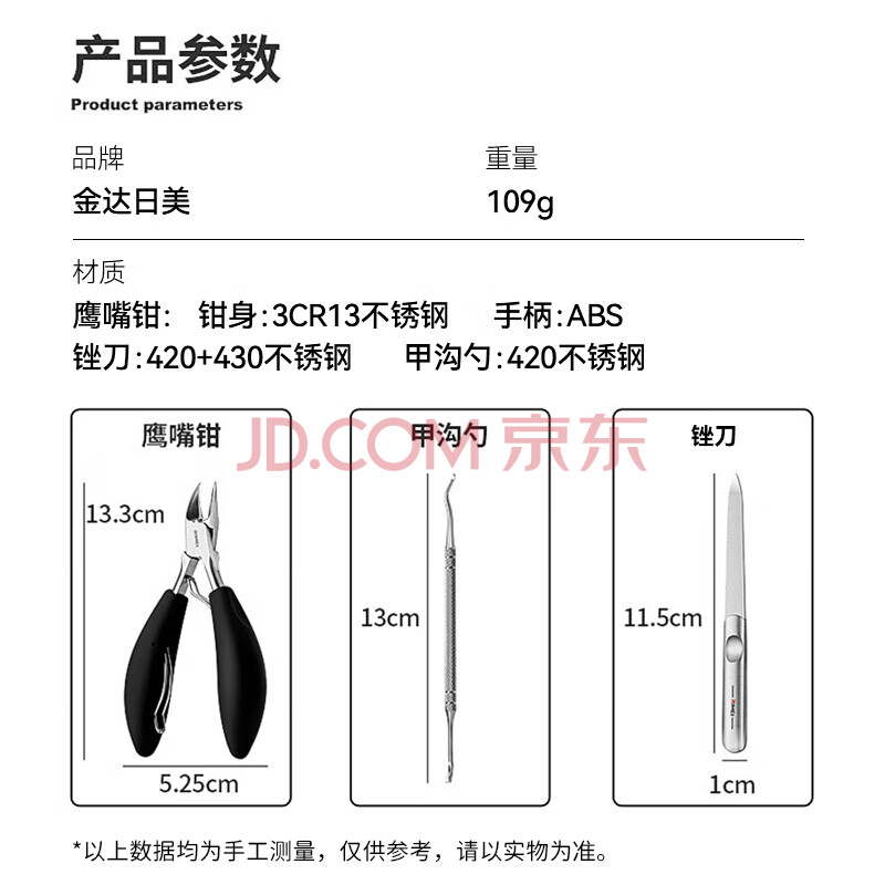 商品相册:金达日美修脚刀三件套甲沟专用指甲刀嵌甲鹰嘴钳甲剪灰脚趾甲斜口指甲锉第