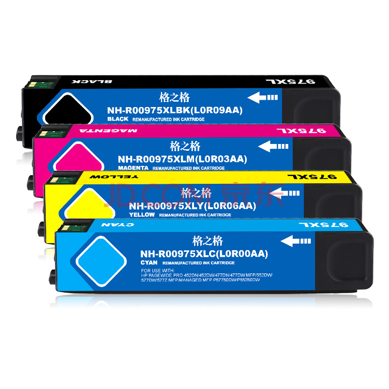 商品相册:格之格975XL墨盒4色套装 适用惠普MFP377dw 352dn 452dn 452dw 477dnMFP 552dw打印机粉盒第1张/共5