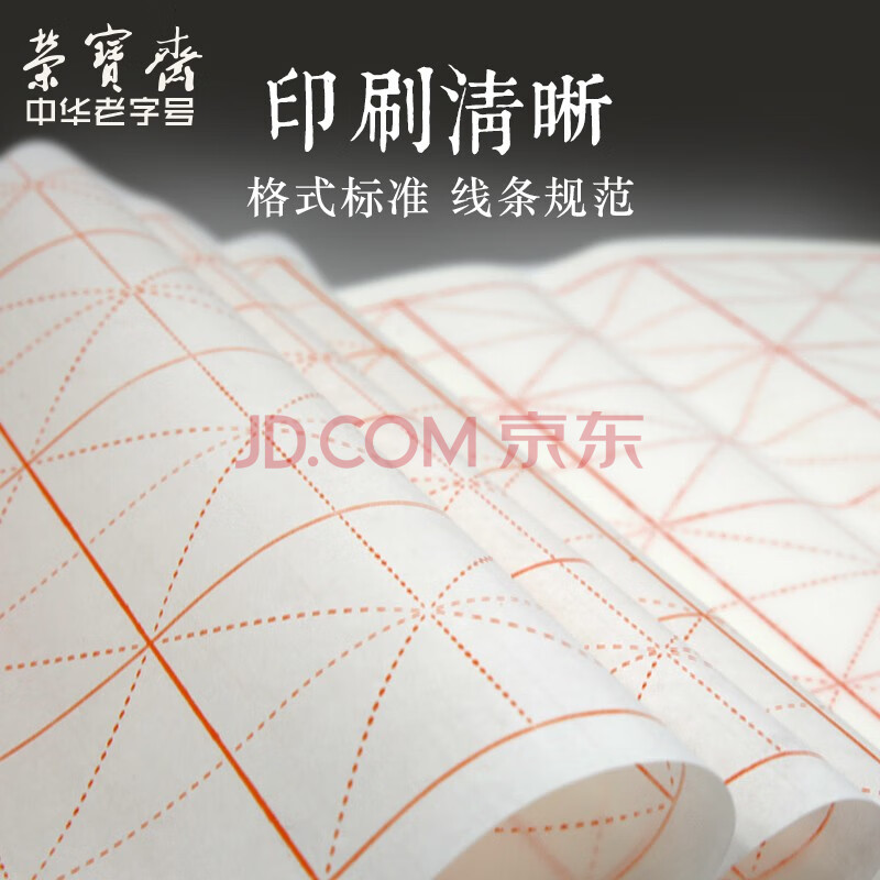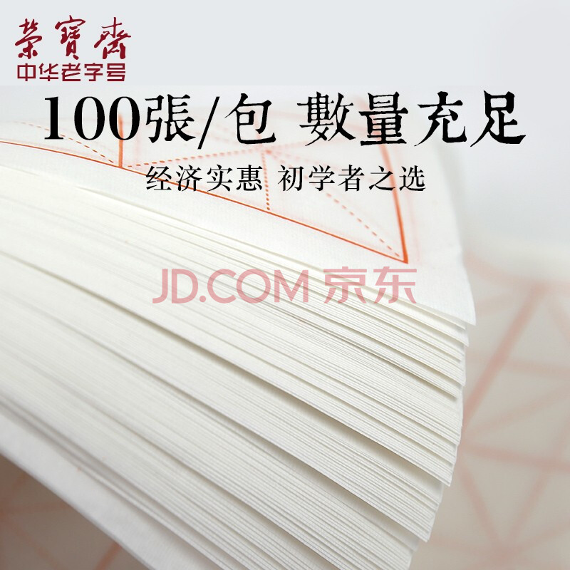商品相册:荣宝斋 米字格宣纸 日星宣纸半生熟书法专用练习作品 文房四宝初学毛笔字 半生熟-7.5cm*32格/100张第1张/共8