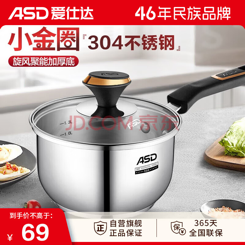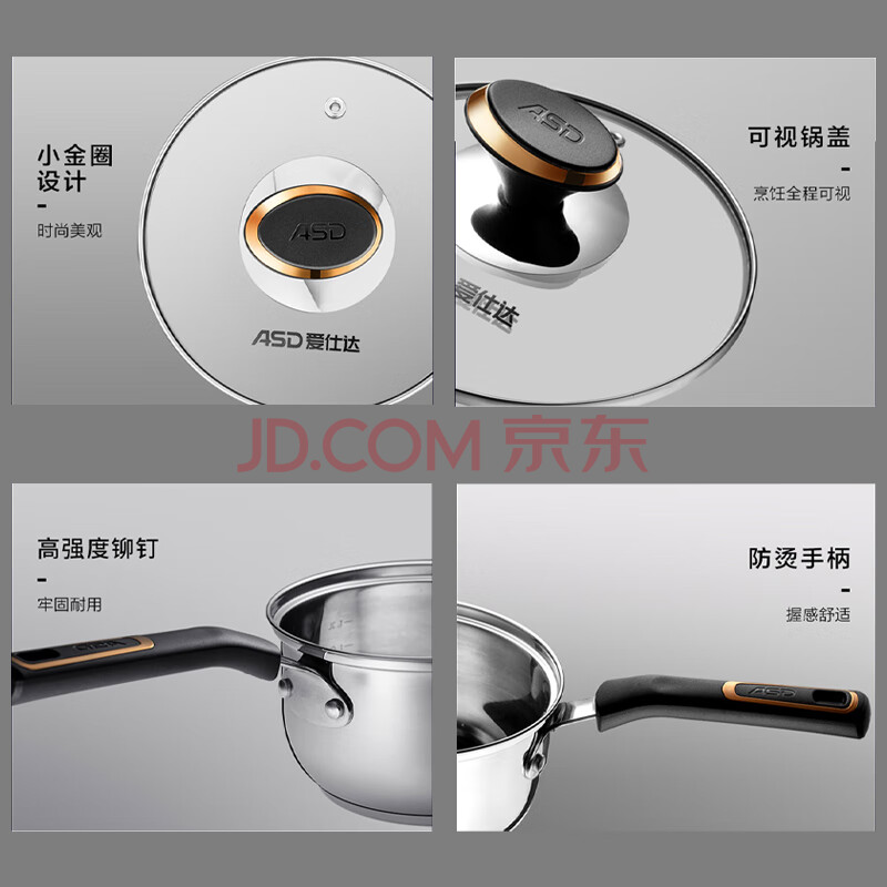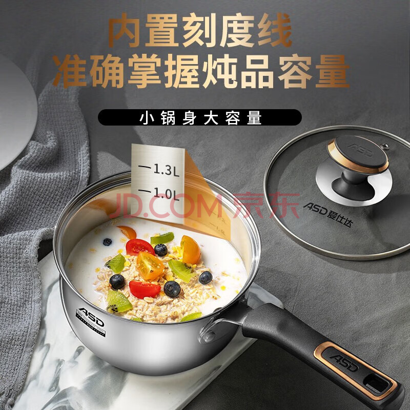 商品相册:爱仕达 ASD 奶锅304不锈钢16CM宝宝辅食锅小奶锅复底电磁炉通用NS16B3WG第