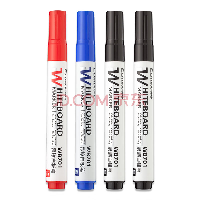 商品相册:齐心(Comix)办公会议易擦白板笔4支组合装(2黑1红1蓝)办公文具耐磨耐用老师培训教学 K7014第