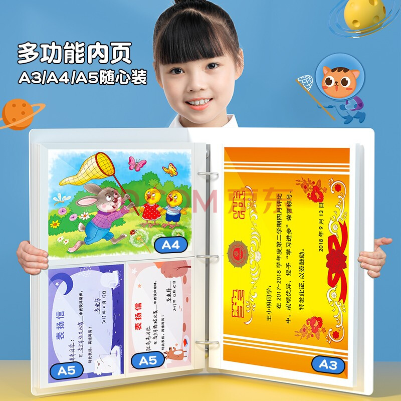 商品相册:【超级爆款】猫太子a4奖状收集册大号画册男孩荣誉证书收纳收藏儿童小学生女孩装放奖状挂墙展示升级款 粉第
