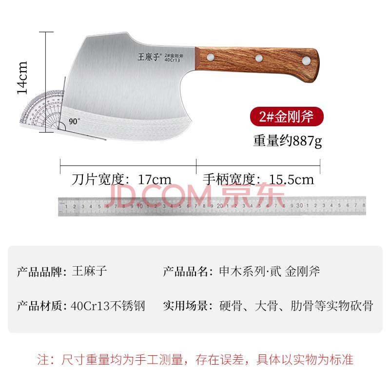 商品相册:王麻子菜刀砍骨刀 2号金刚斧 厨房专用不锈钢剁肉斩大骨排骨屠宰刀具第