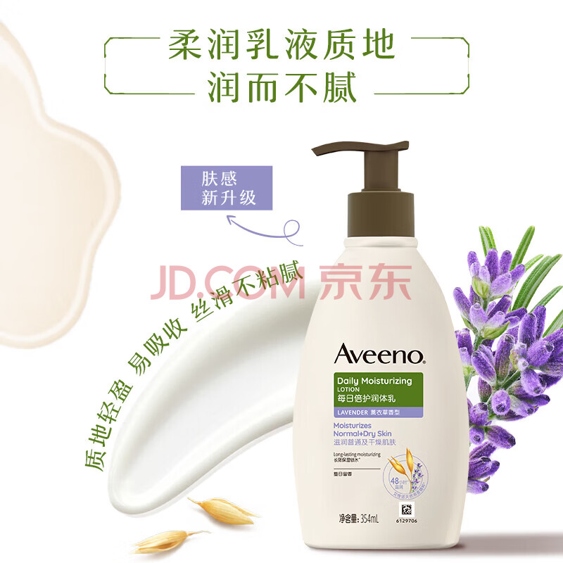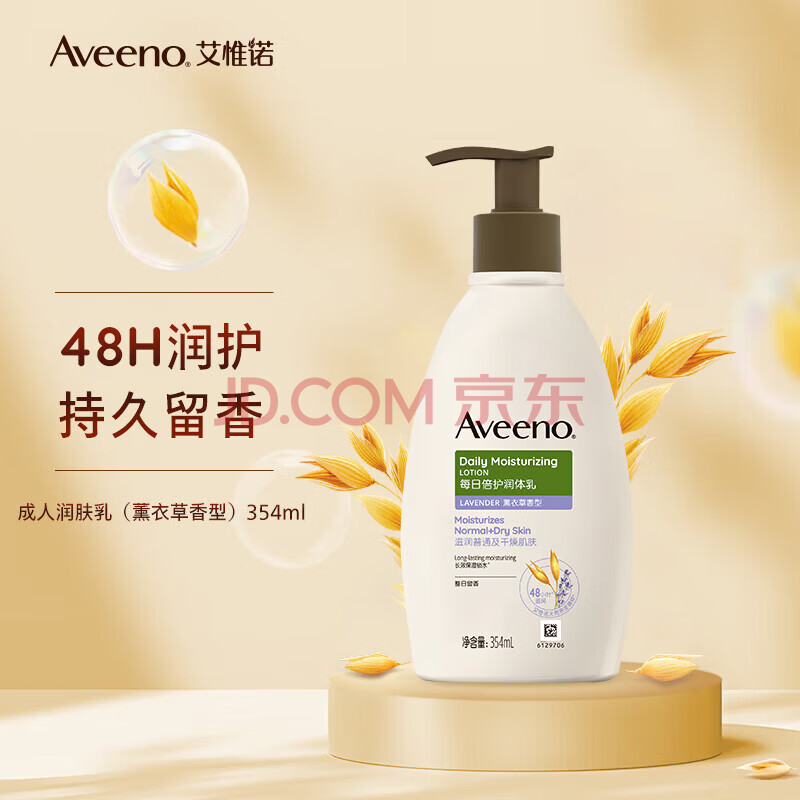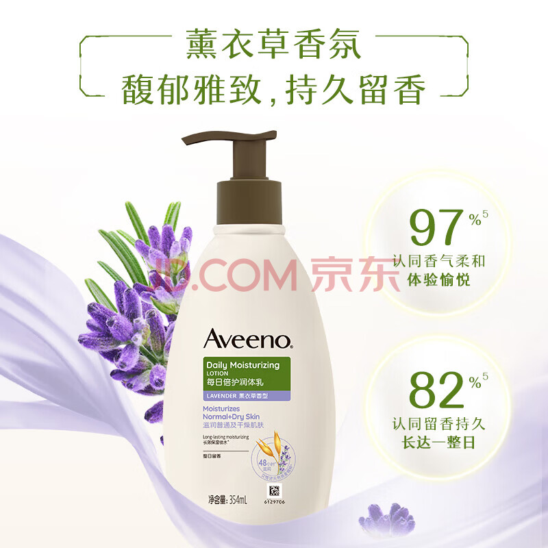 商品相册:艾惟诺(Aveeno)艾维诺成人身体乳 青少年秋冬滋润保湿舒缓润肤乳 薰衣草香354ml 第