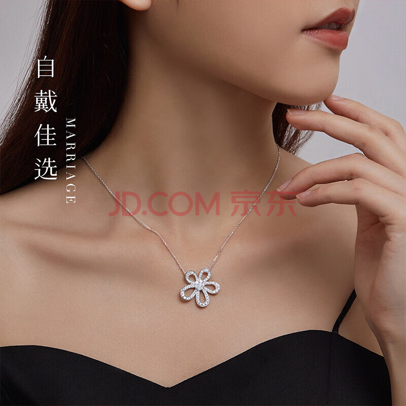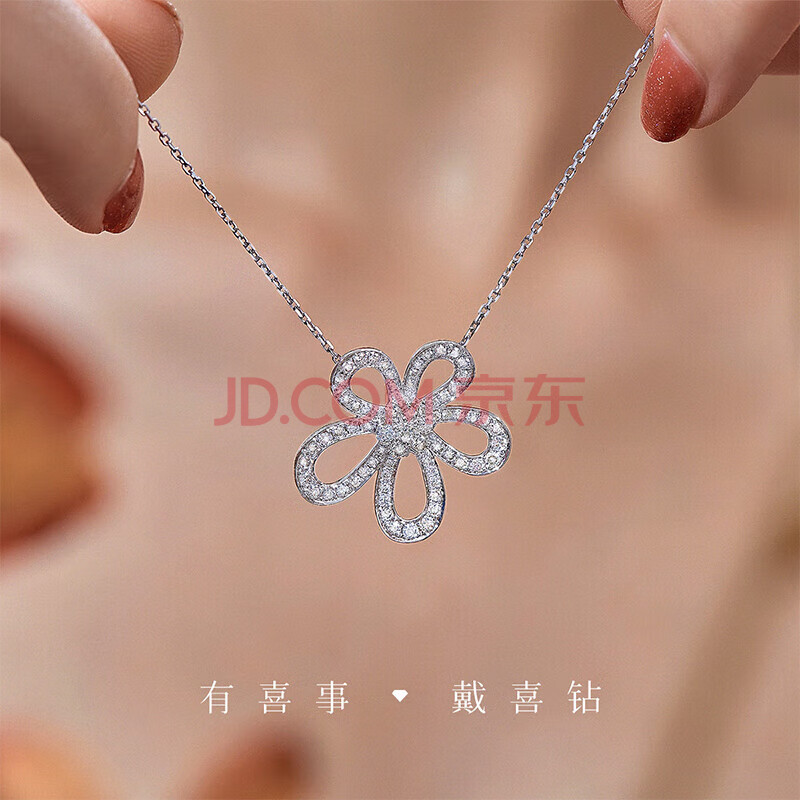商品相册:喜钻生日礼物PT950铂金钻石吊坠桃花幸福格桑花钻石项链共29分第