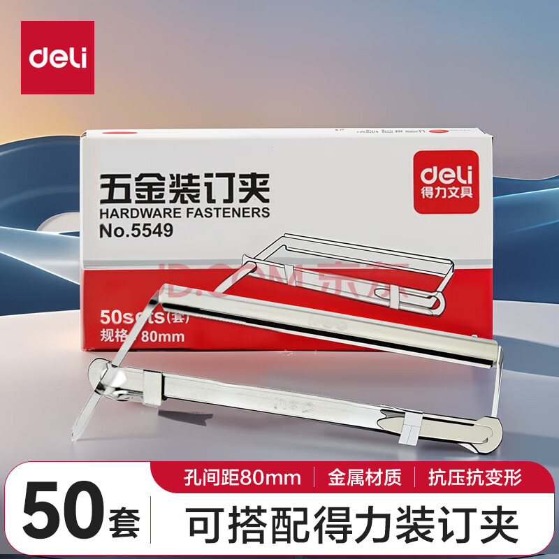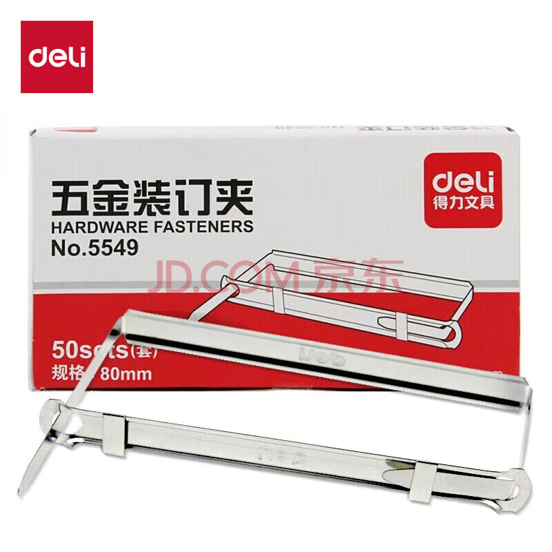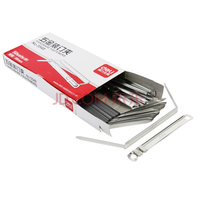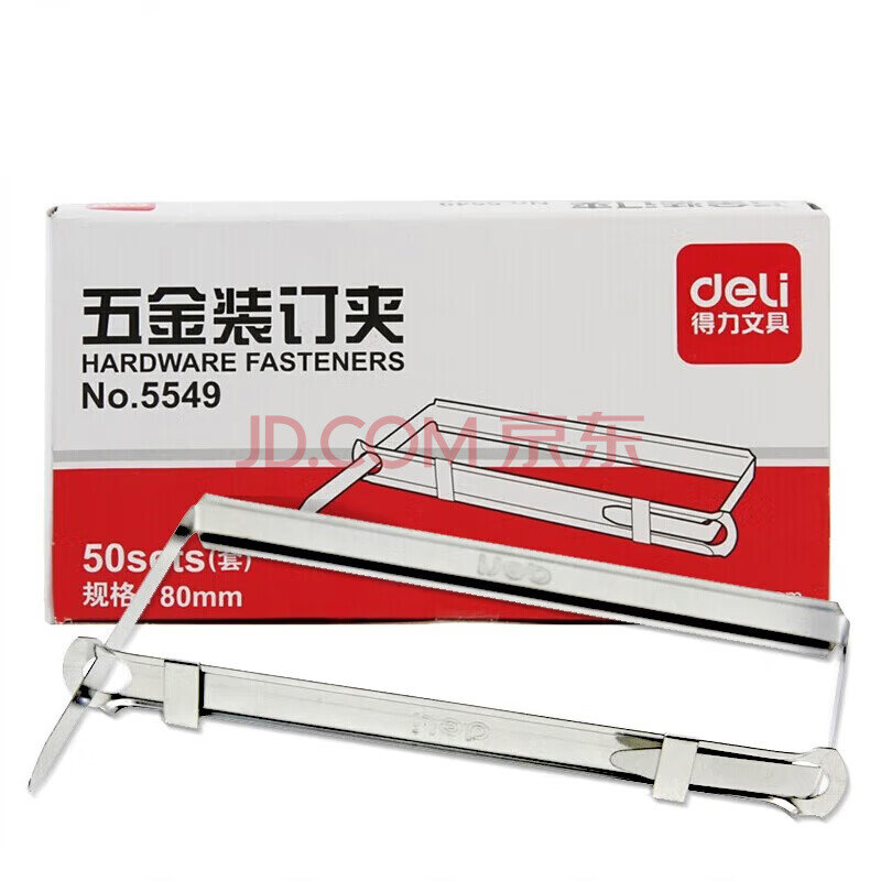 商品相册:得力(deli)【超级爆款】80mm抗压金属两孔装订夹/五金装订夹条打孔器活页环配件 50套/盒办公用品 5549第