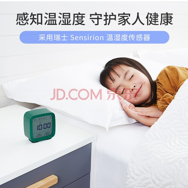 商品相册:青萍蓝牙闹钟 智能温湿度监测多功能背光床头桌面学生接入米家 绿色第