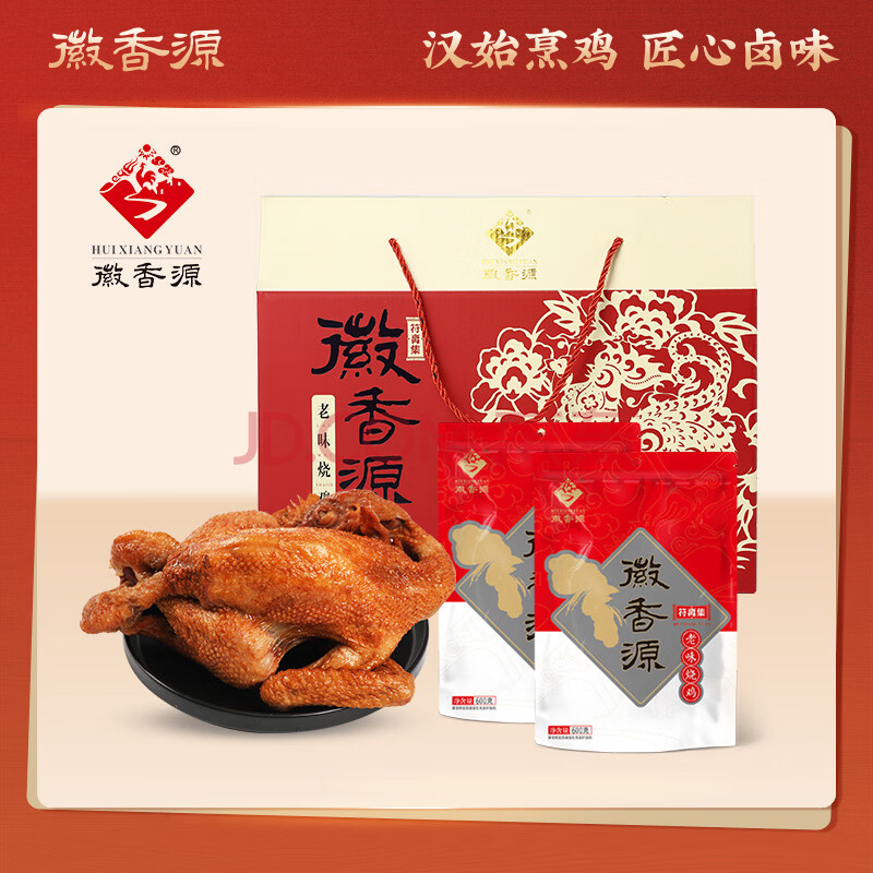 商品相册:徽香源符离集烧鸡白羽鸡2只装礼盒 1200g/盒送礼熟食即食非扒鸡年货第