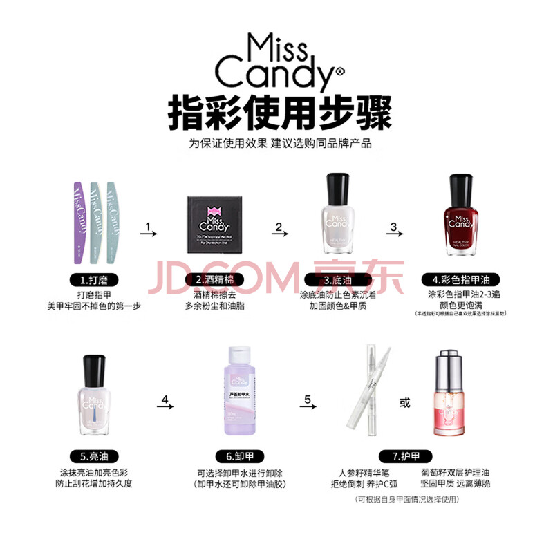 商品相册:Miss Candy指甲油卸甲包洗甲水柔和不伤手便携美甲卸甲水工具75%酒精棉50片第