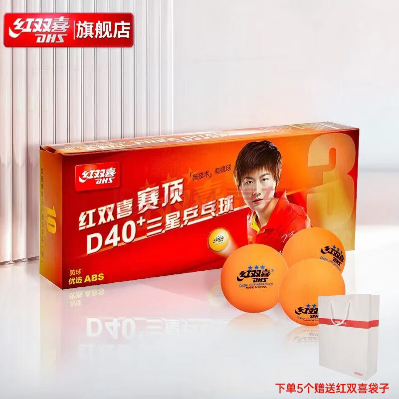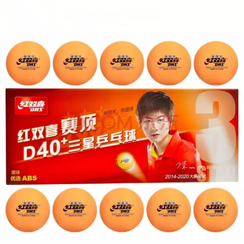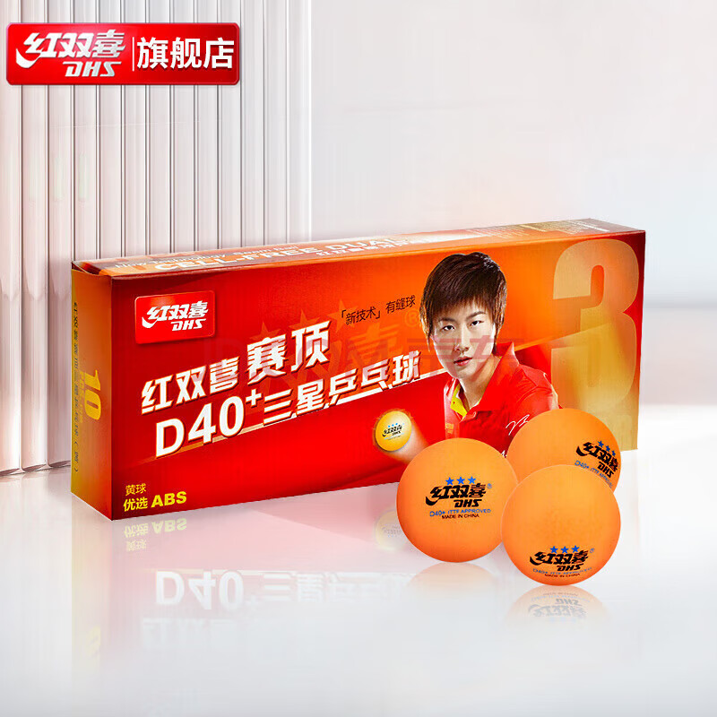 商品相册:红双喜DHS乒乓球三星大赛事比赛用兵乓球 赛顶三星 黄色 10只/盒第1张/共9