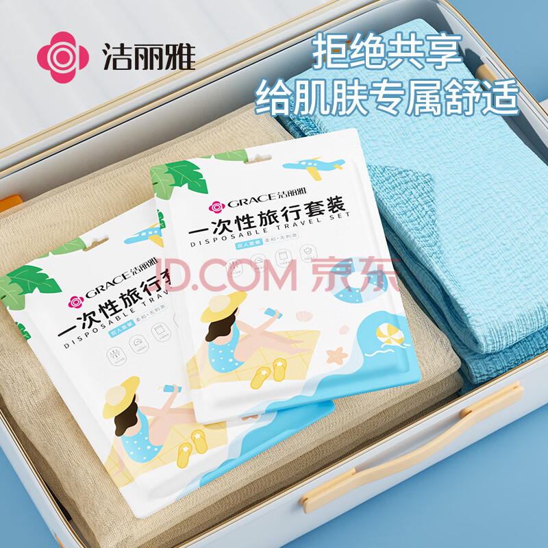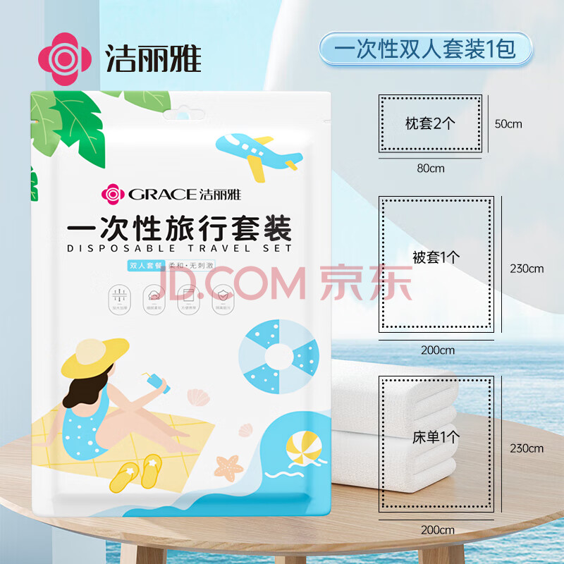 商品相册:洁丽雅(Grace)一次性床单被罩套枕套床上用品旅游酒店宾馆隔脏 双人款四件套 第