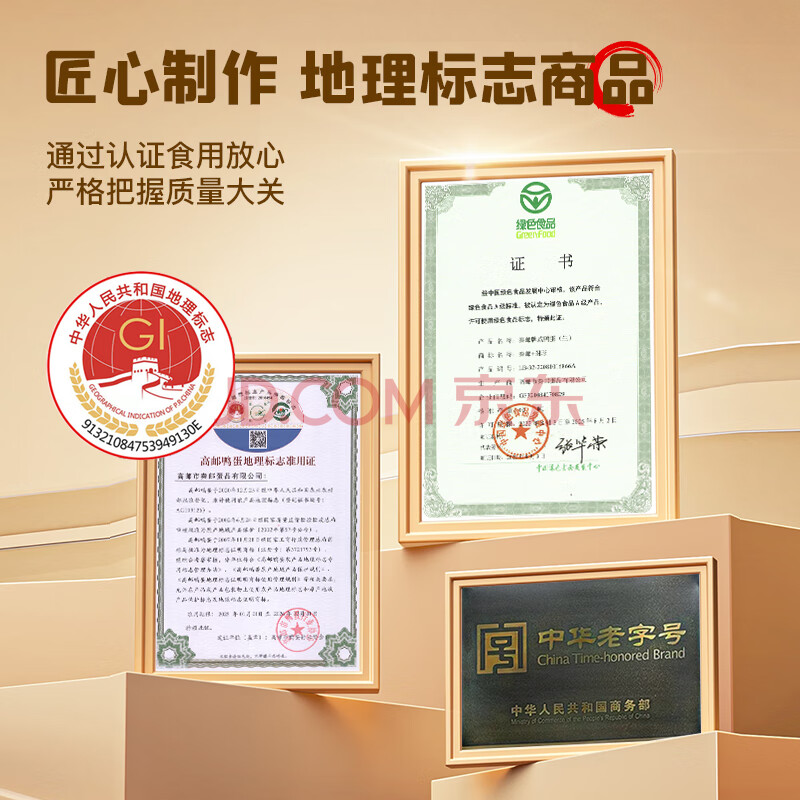 商品相册:秦邮牌 高邮咸鸭蛋 熟65g*16枚 家庭装 即食流油 中华老字号第