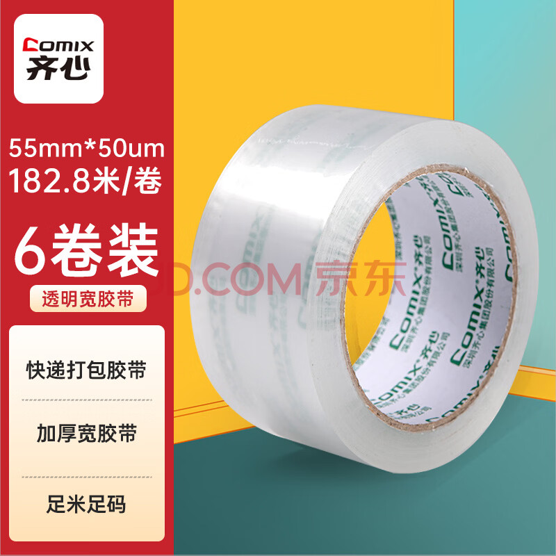 商品相册:齐心(COMIX)(Comix)透明胶带/宽胶带/封箱胶带加厚快递打包胶带透明6卷宽55mm*80y*50um长73.2米/卷JF5508-6第