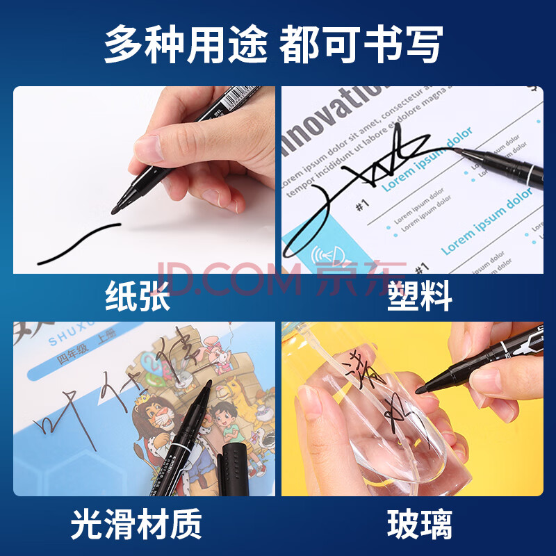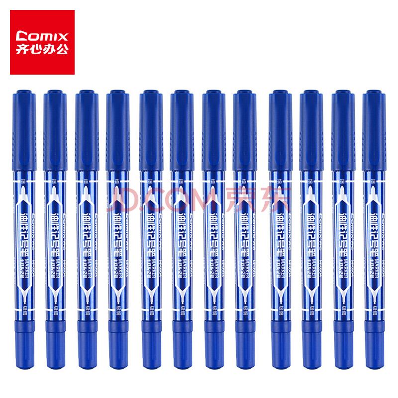 商品相册:齐心(Comix)速干防水小双头油性物流笔/记号笔 蓝色12支装 MK804第1张/共8