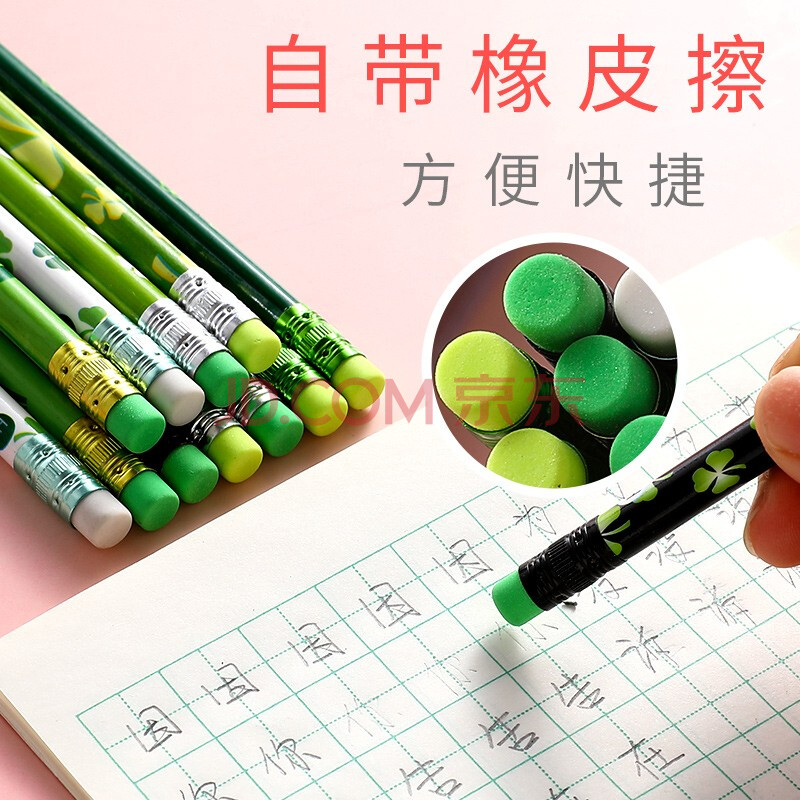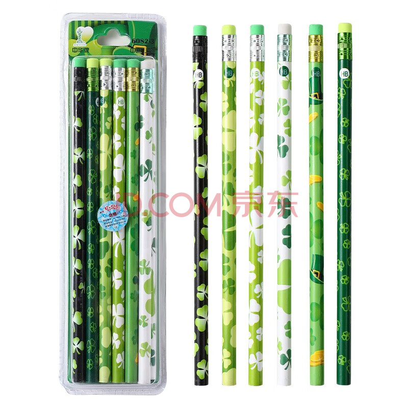 商品相册:【开学必备】中华 6082-3 HB铅笔学生用橡皮头铅笔三叶草款铅笔12支装第