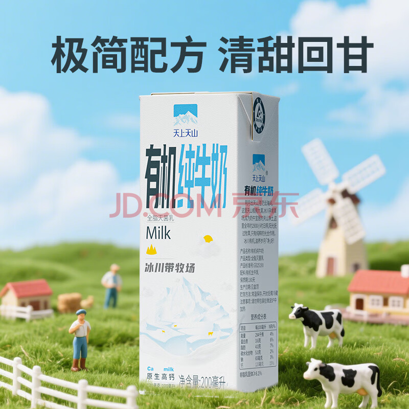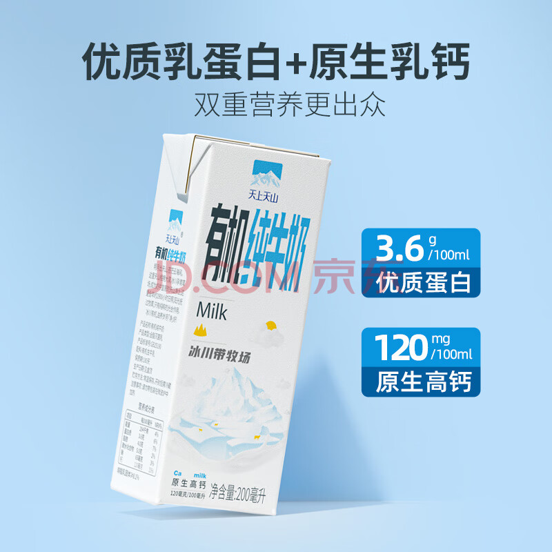 商品相册:天上天山有机成人学生早餐纯牛奶200ml*20盒原生高钙奶礼盒第