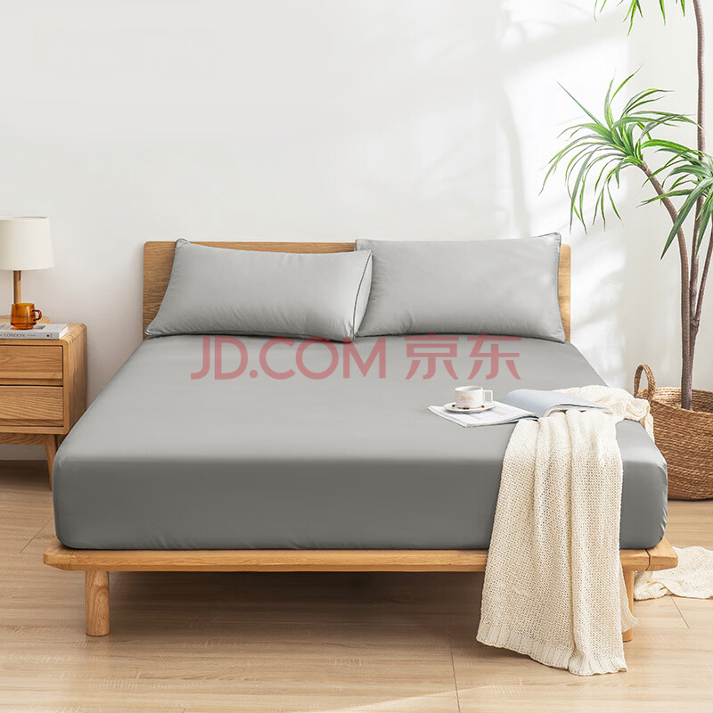 商品相册:京东京造 60支长绒棉磨毛床笠 A类加厚纯棉床罩床垫保护套 1.8米床 燈灰第1张/共8