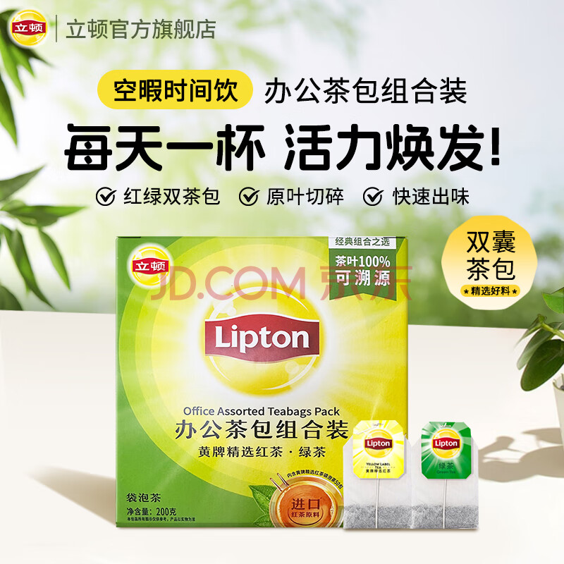 商品相册:立顿红茶绿茶组合装 茶叶办公室茶包组合礼物 袋泡茶包2g*100包第