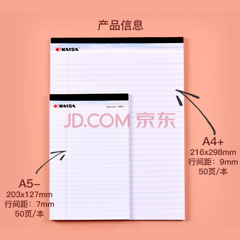 商品相册:凯萨(KAISA)A4+/50张美式拍纸本便签本 legalpad上翻笔记本草稿本工作记事本薄脆本 6本装第