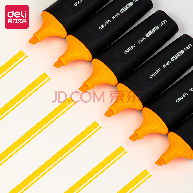 商品相册:得力橙色荧光笔考试复习划重点醒目标记笔 物流办公学生通用水性记号笔 手账绘画可用10支S600第1张/共5
