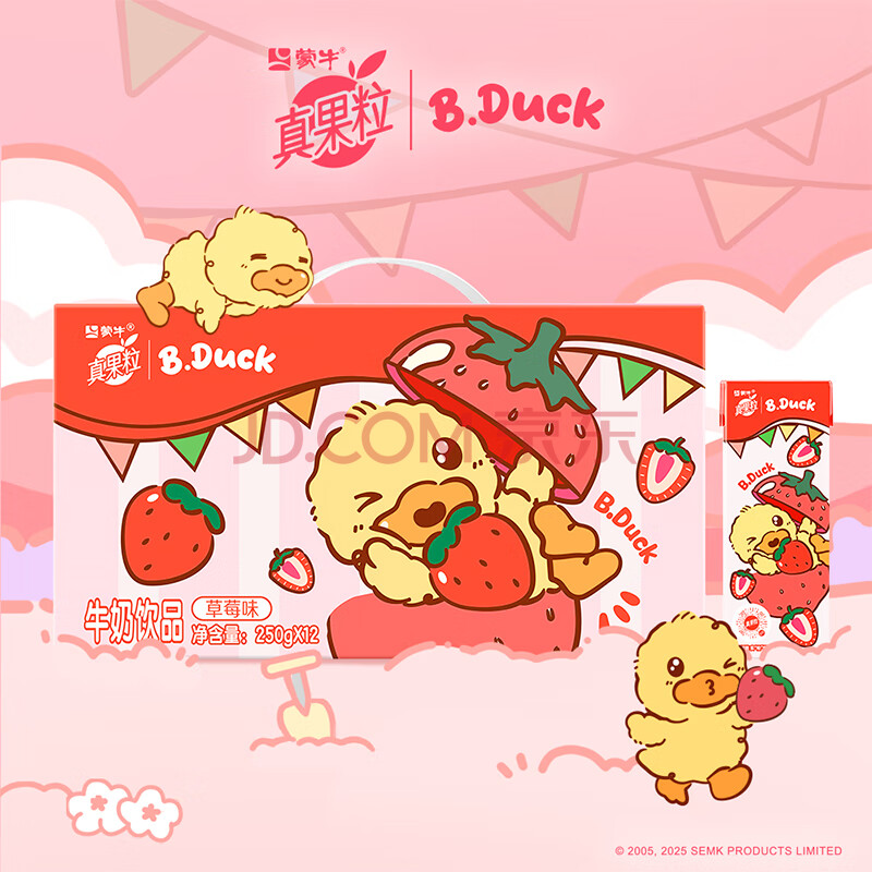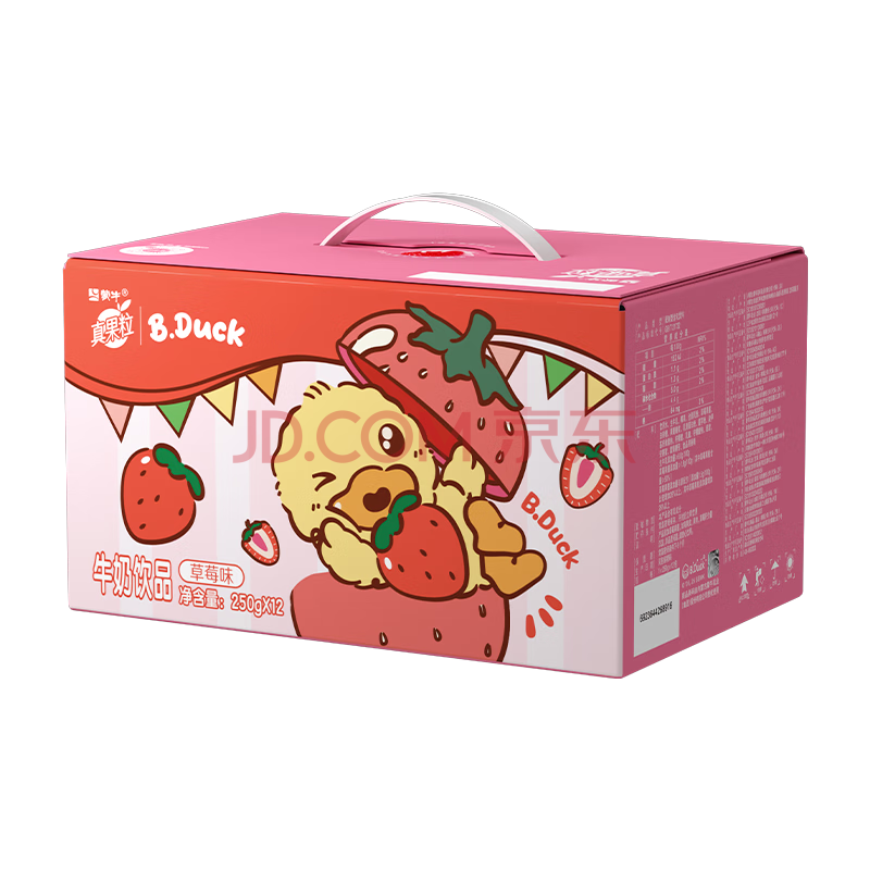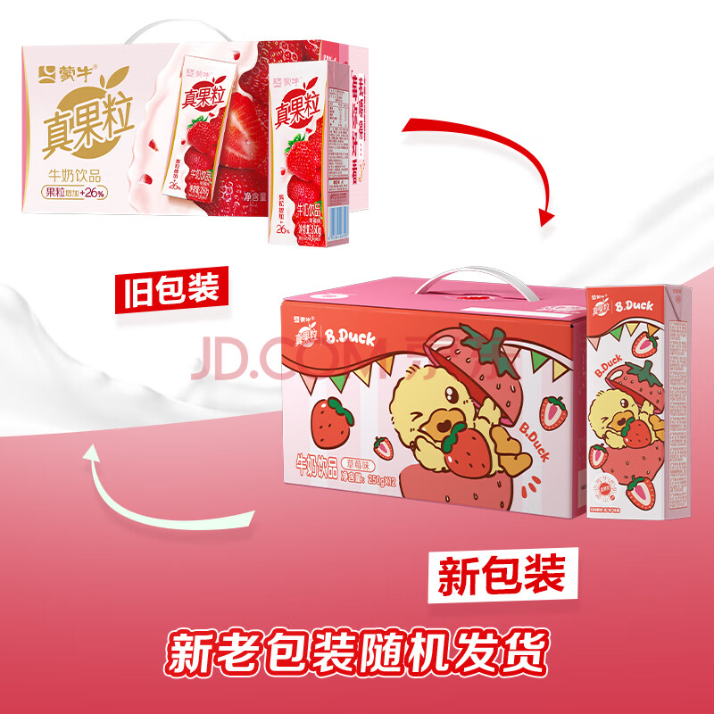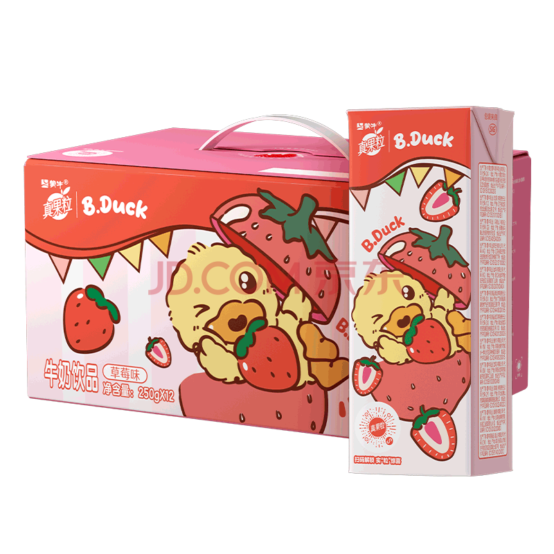 商品相册:蒙牛真果粒草莓味牛奶饮品250g*12盒 小黄鸭IP 礼盒新老包装 含乳饮料第