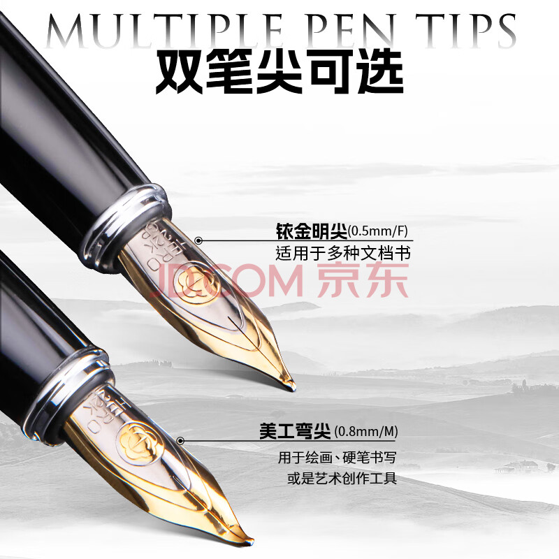 商品相册:英雄(HERO) 钢笔 382弯尖商务办公学生练字书法铱金签字墨水笔 美工尖 黑色第