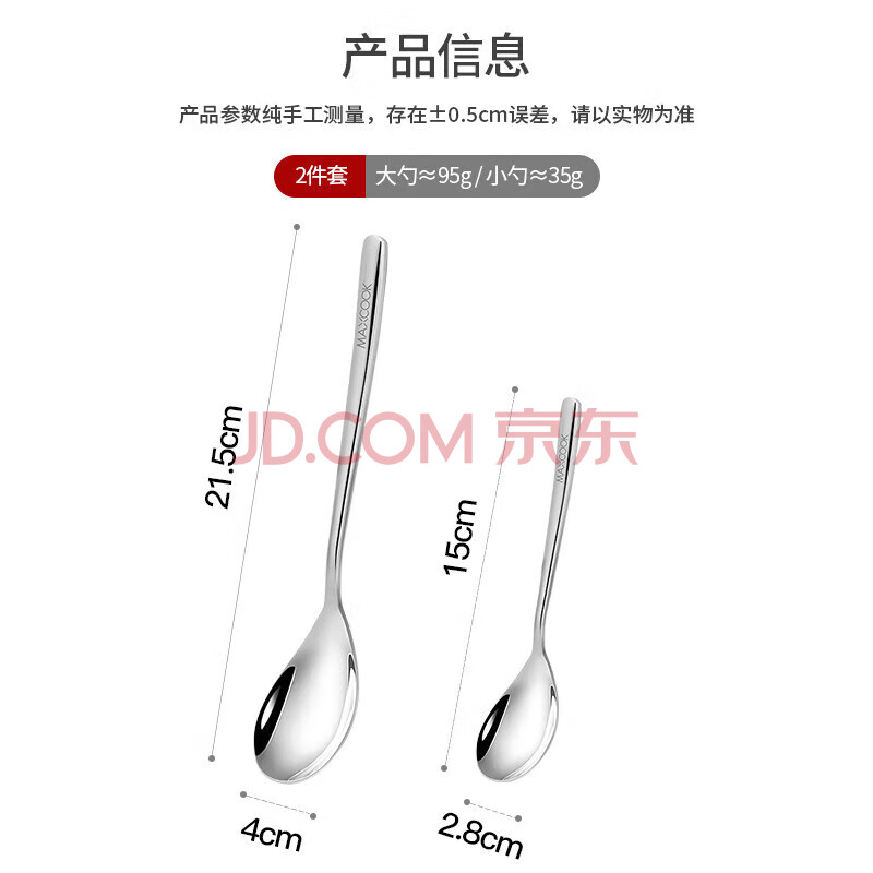 商品相册:美厨(maxcook)316L不锈钢汤勺汤匙 加大加厚勺子餐勺饭勺 2件套 MCGC3677第