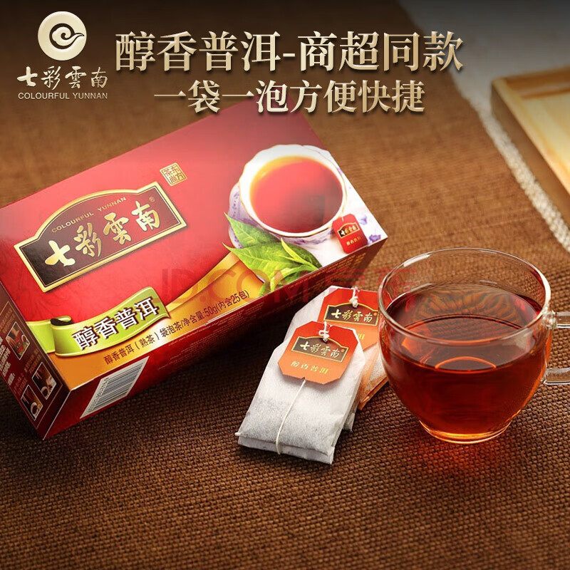 商品相册:七彩雲南茶叶 普洱茶 熟茶 醇香袋泡茶50g/25袋 线下同款第