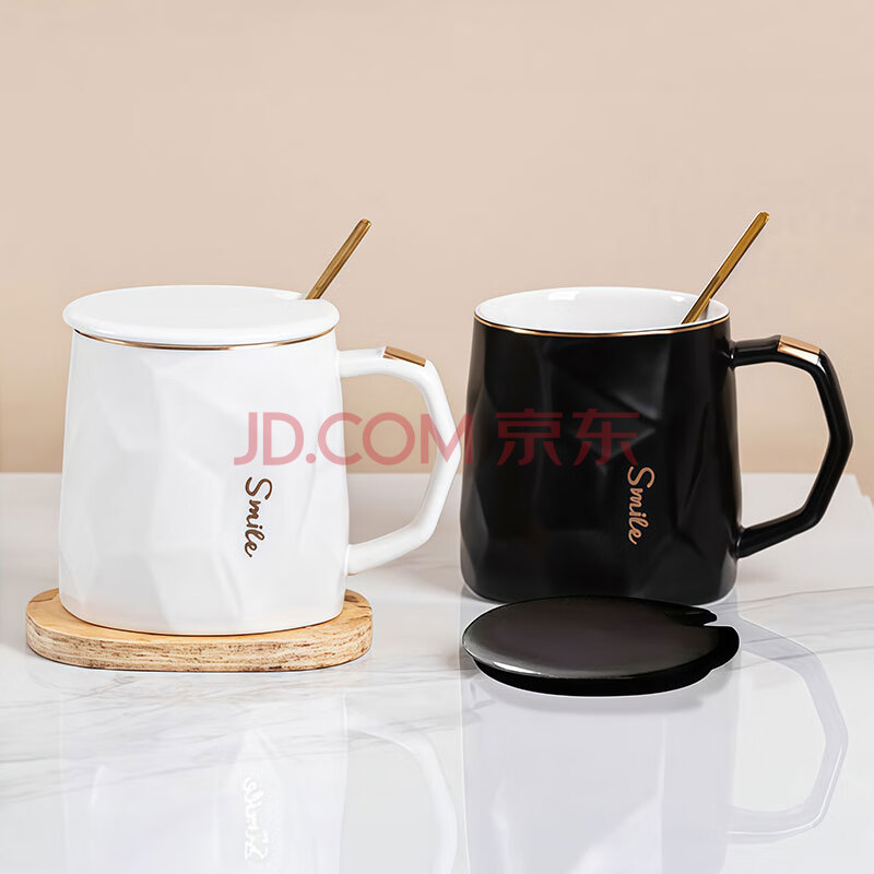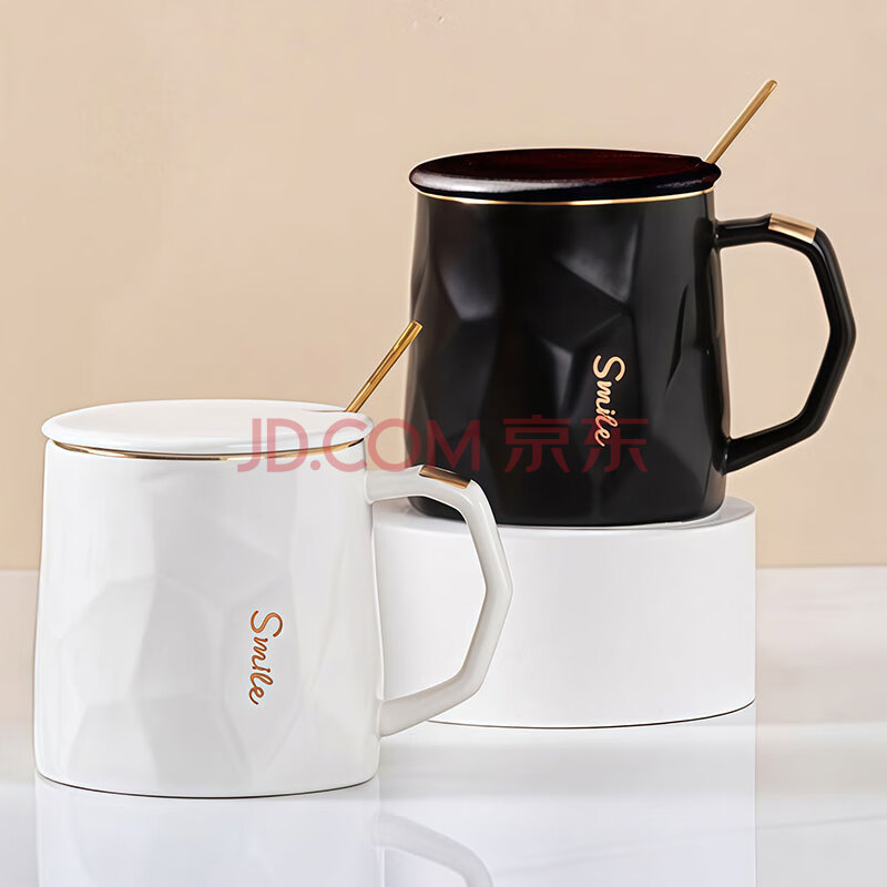 商品相册:几物森林 陶瓷马克杯带盖大容量咖啡杯情侣杯牛奶杯早餐水杯男女茶杯白色第