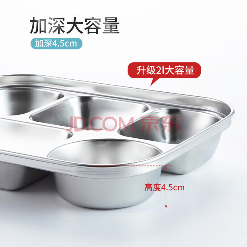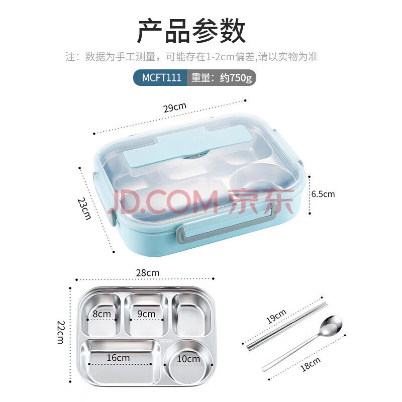 商品相册:美厨(maxcook)304不锈钢饭盒4.5cm加大加深5格学生饭盒保温盒2L配餐具个MCFT111第