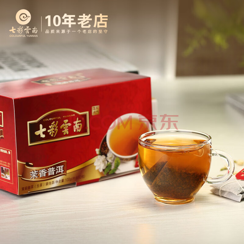 商品相册:七彩雲南茶叶 普洱茶 生茶 茉香袋泡茶100g/50袋 线下同款第
