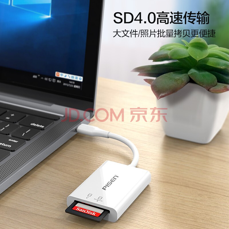 商品相册:品胜Type-C高速读卡器SD/TF4.0二合一适用电脑苹果15/16/17手机/iPad/支持UHS-I/II读取监控内存卡第