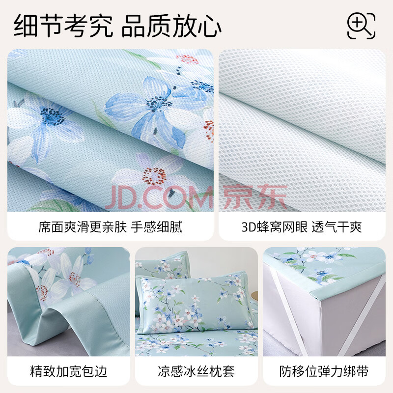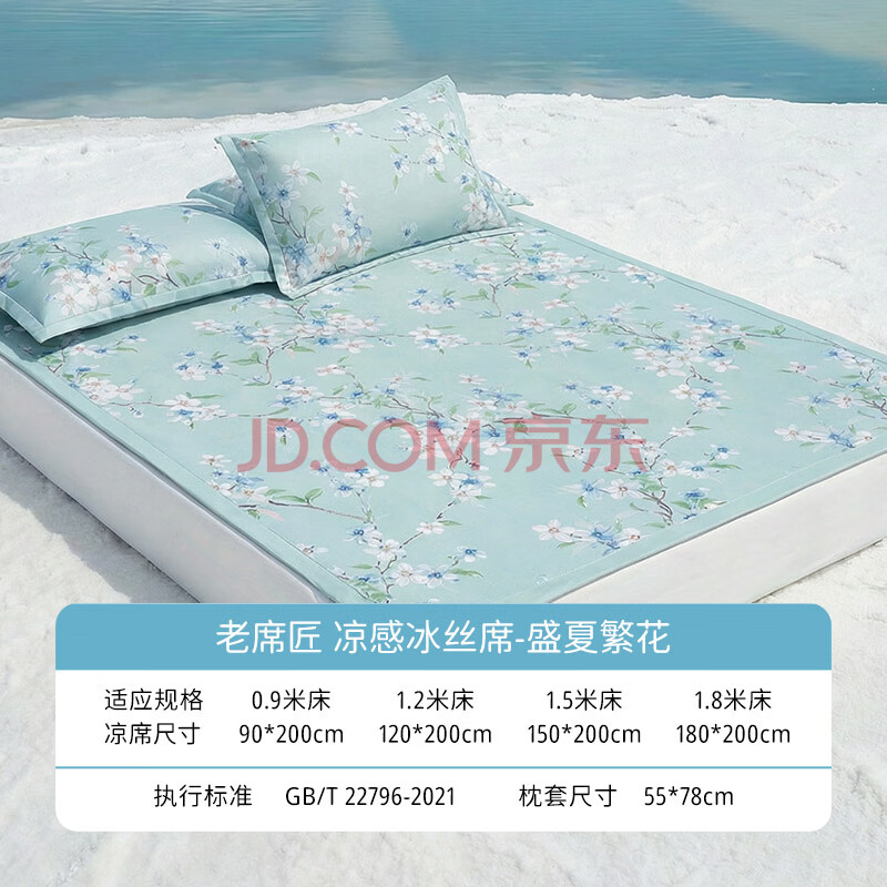 商品相册:老席匠凉感冰丝席凉席800D 单人两件套90*200 盛夏繁花【可机洗】第