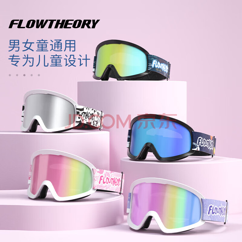 商品相册:Flow Theory儿童滑雪镜男女童双层防雾单双板滑雪眼镜滑雪板护目镜 粉片猫咪第