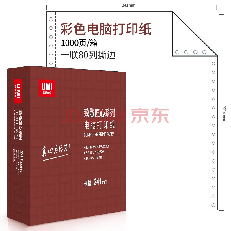 商品相册:安兴一联整张撕边电脑打印纸针式打印纸单据票据省心省钱品牌保证(241-1S色序:白1000页/箱)第