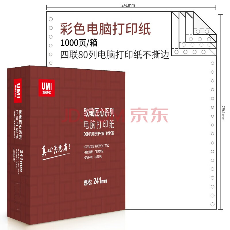商品相册:安兴四联整张不撕边全白电脑打印纸 针式打印纸采购单送货单(241-4S 色序:白白白白 1000页/箱)第