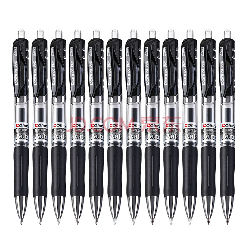 商品相册:齐心(Comix) 12支装0.5mm黑色 胶软手柄按动中性笔/水笔/签字笔 办公文具 K35第