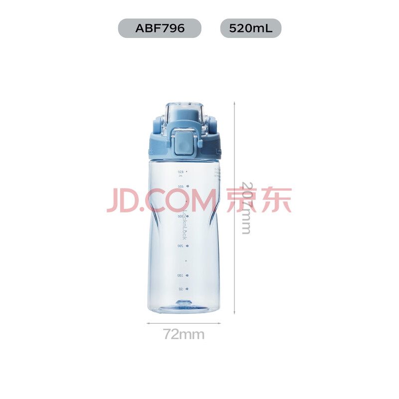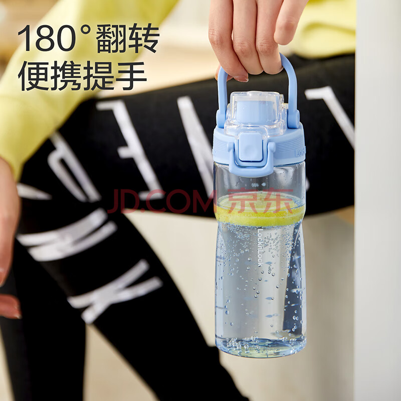 商品相册:乐扣乐扣(LOCK&LOCK)人鱼线塑料运动水杯夏天便携水壶带刻度提手男女水杯子520ML蓝色第