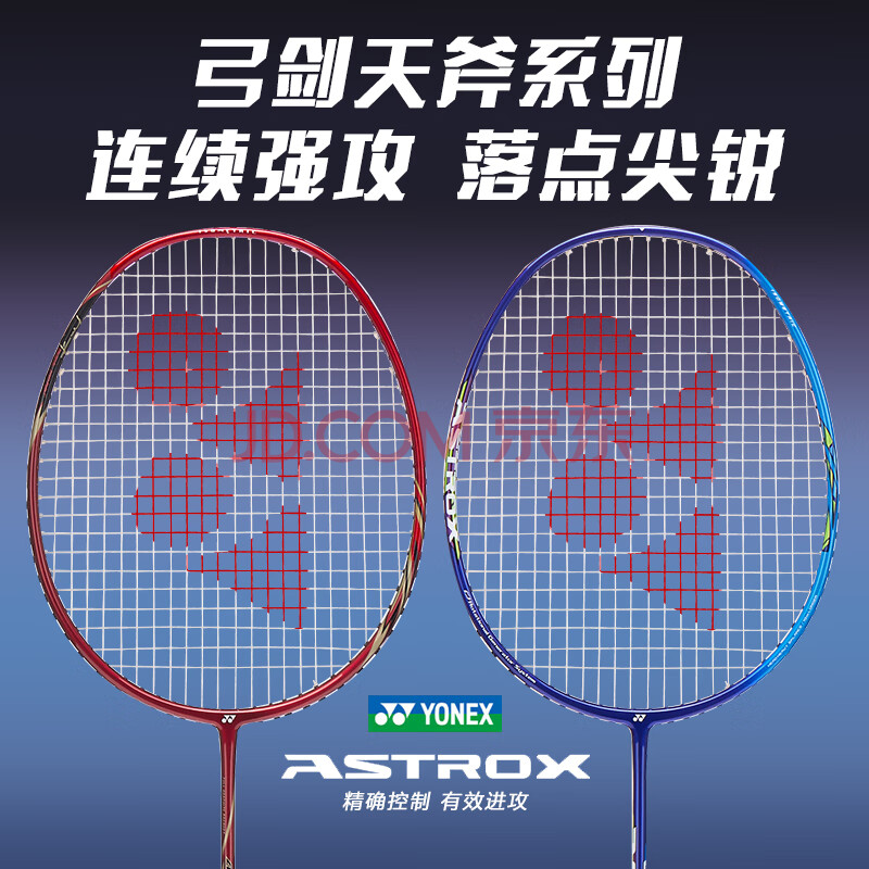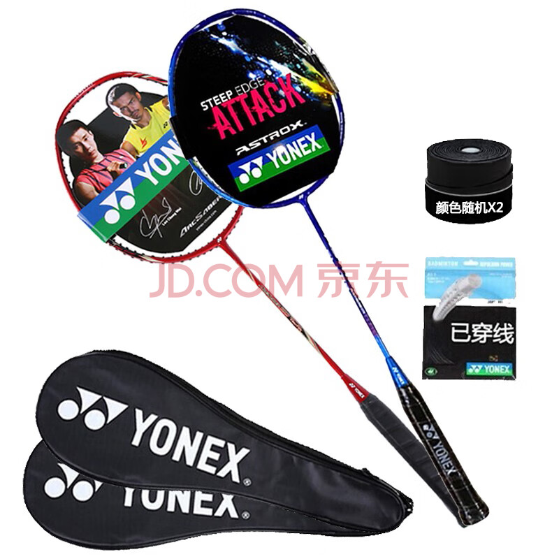 商品相册:YONEX尤尼克斯羽毛球拍全碳素双拍ARC100骐骥红/AX01蓝含手胶 已穿线4U第