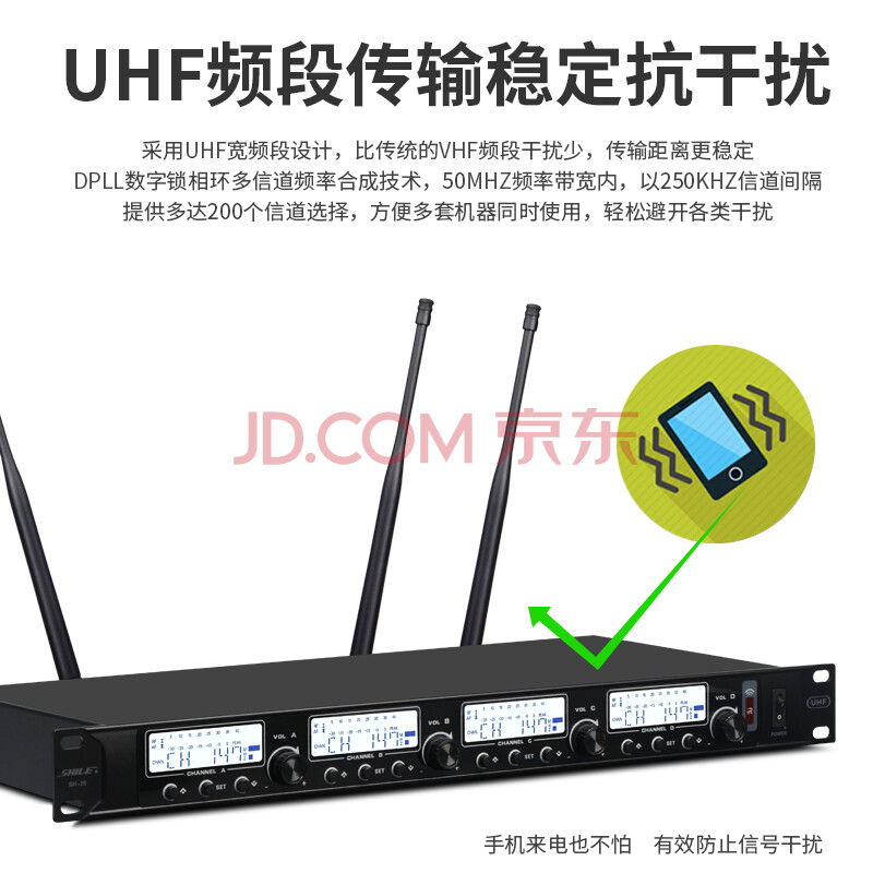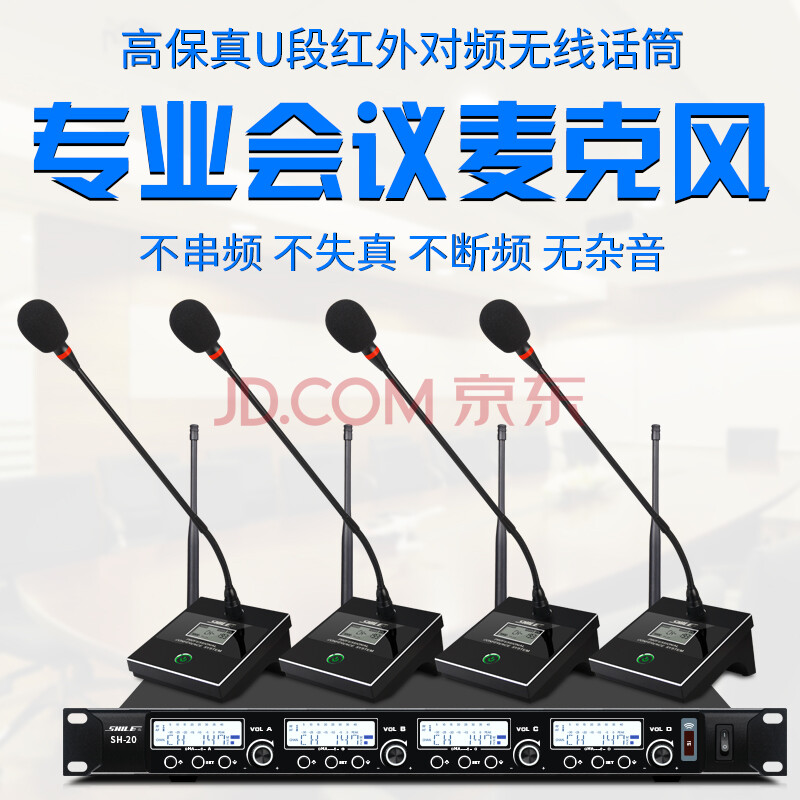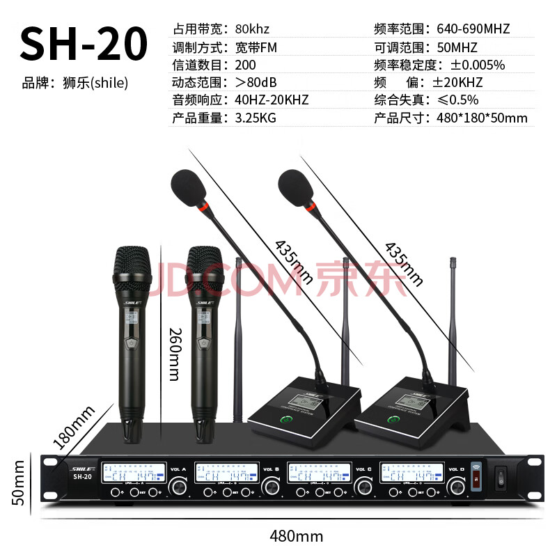 商品相册:狮乐(SHILE)SH-20可调频版 无线话筒一拖四鹅颈手持领夹耳麦可选U段会议话筒2手持2鹅颈第1张/共9