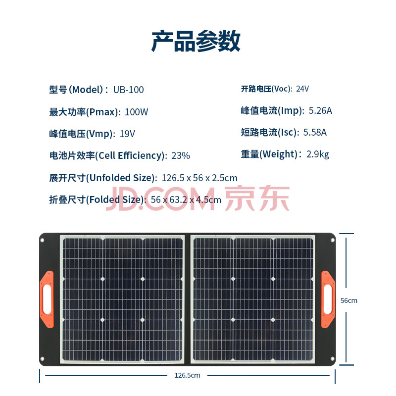 商品相册:荒野乐太阳能充电板100W瓦可折叠光伏板折叠包快充单晶硅适用户外储能电源手机充电宝户外应急电源第