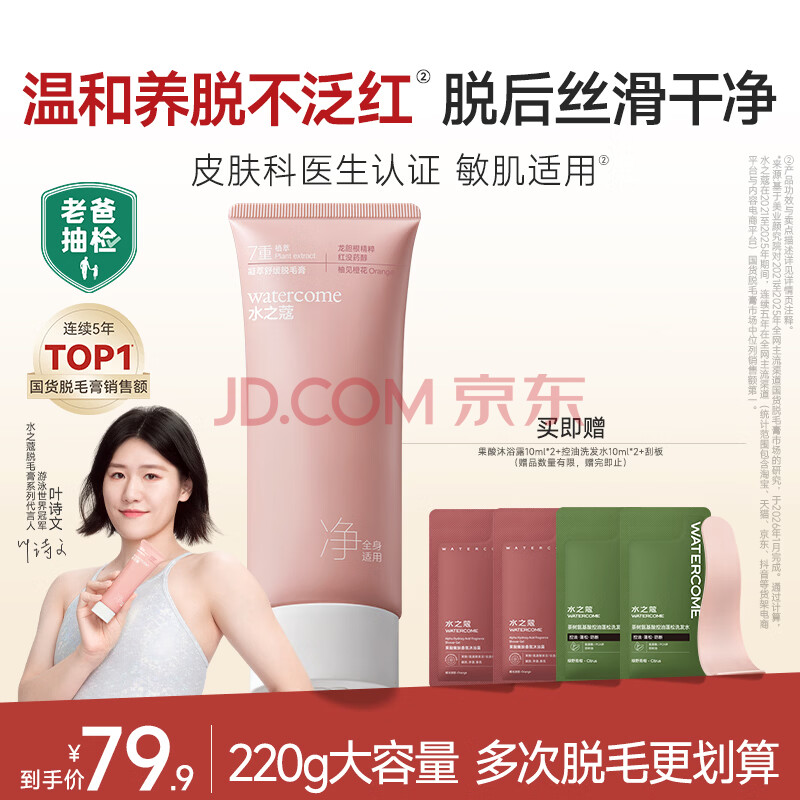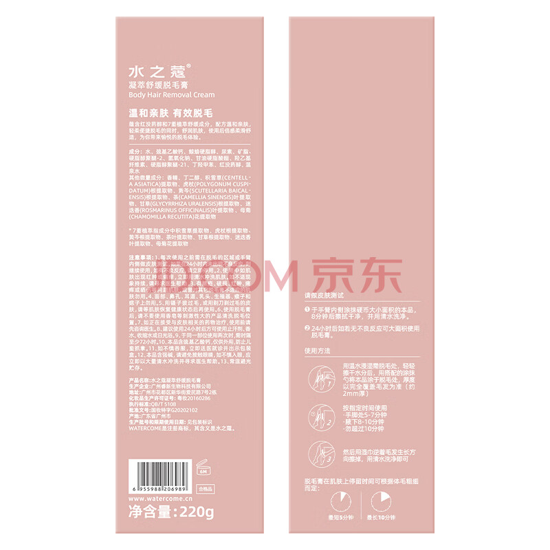 商品相册:水之蔻脱毛膏220g男女士腋下全身温和去脱毛非永久不再生长非私密处第1张/共6