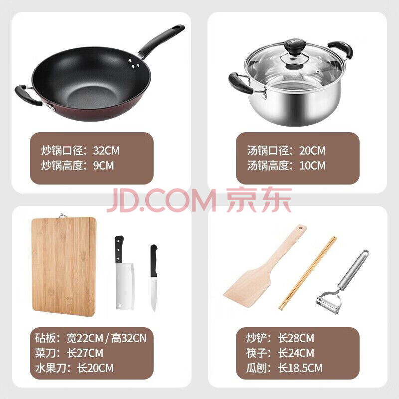 商品相册:美厨(MAXCOOK)锅具套装炒锅汤锅砧板菜刀筷子木铲削皮刀小刀厨具8件套 MCTZ004第