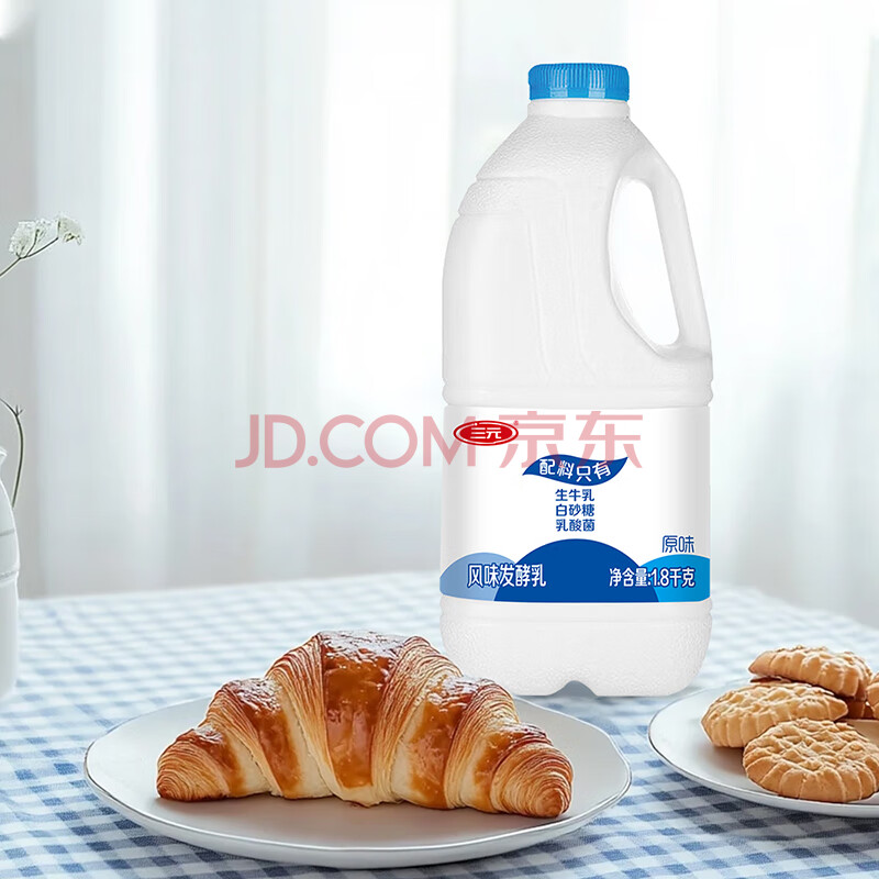 商品相册:三元原味大桶风味酸牛奶1.8kg/桶 家庭装酸奶 新老包装交替发货第1张/共5