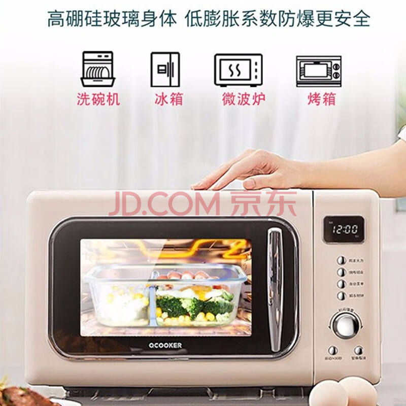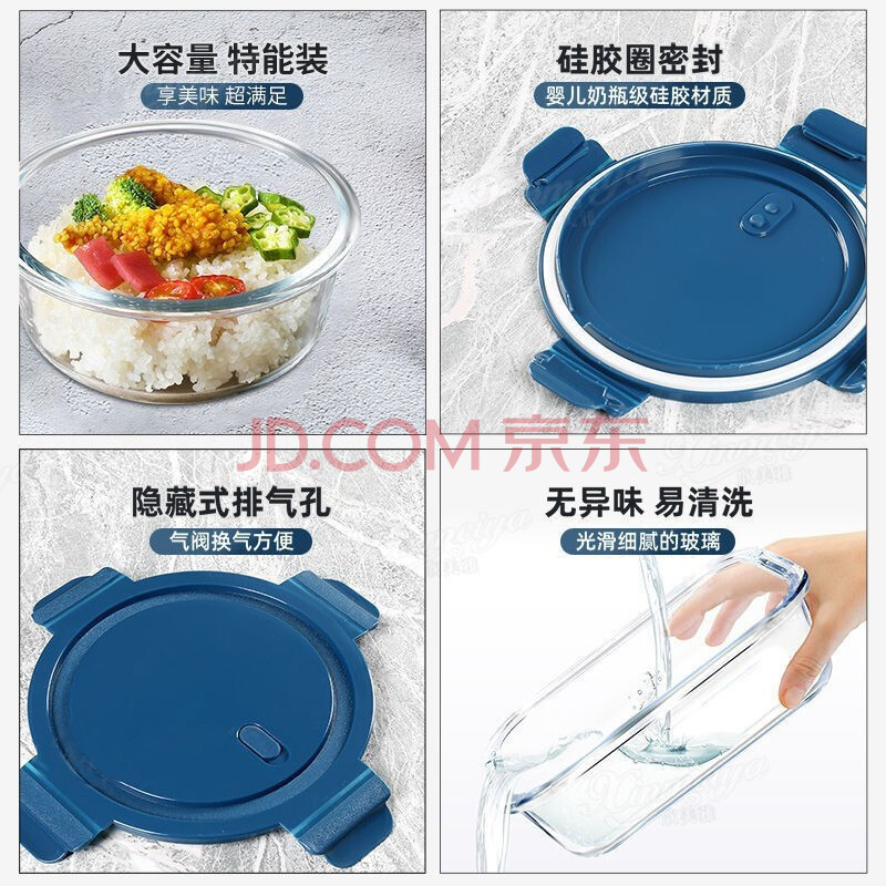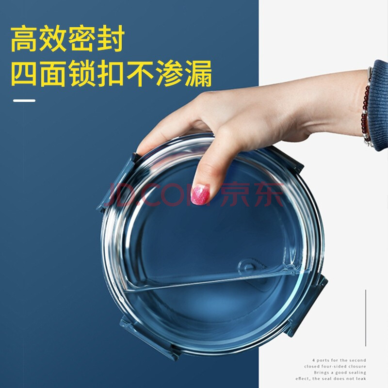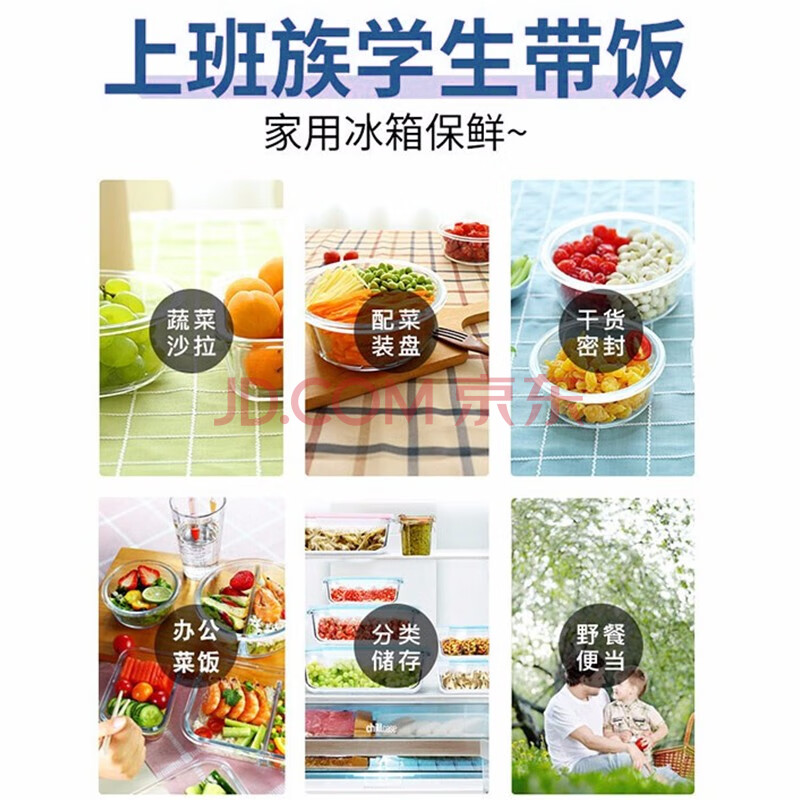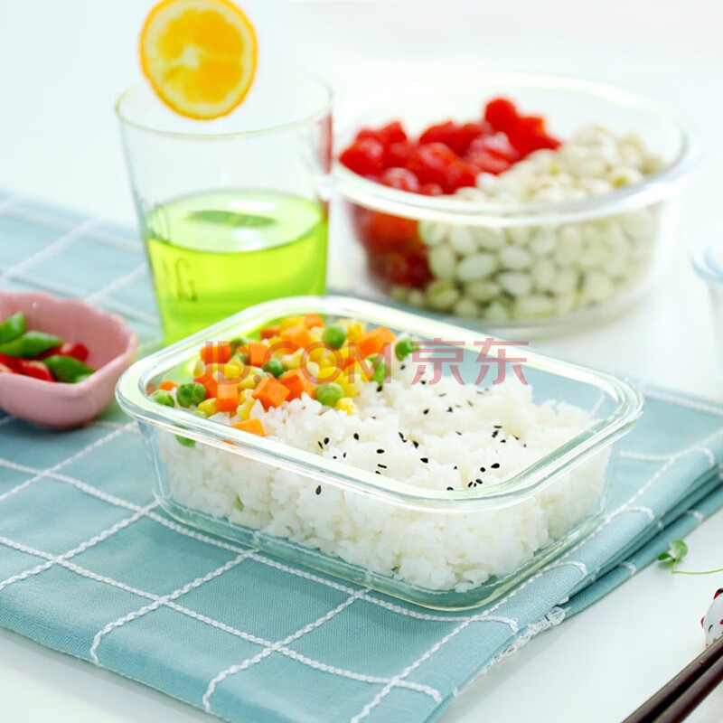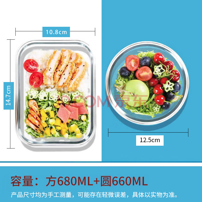 商品相册:拾画 保鲜盒微波炉饭盒2件套 高硼硅耐热玻璃便当盒长680ml+圆660ml第