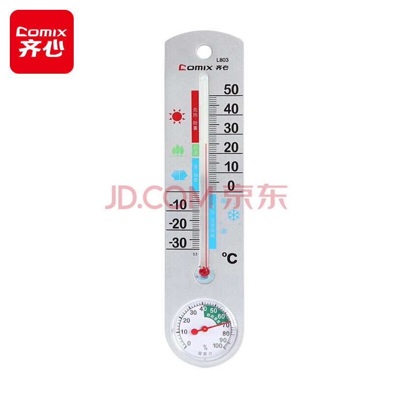 商品相册:齐心(COMIX)经典挂壁式温度计 家用室内温度表 免电池温湿度计 婴儿房壁挂式大棚养殖 干湿度计 办公文具L803第