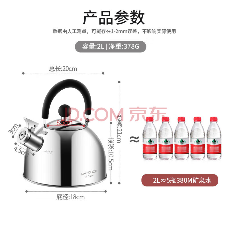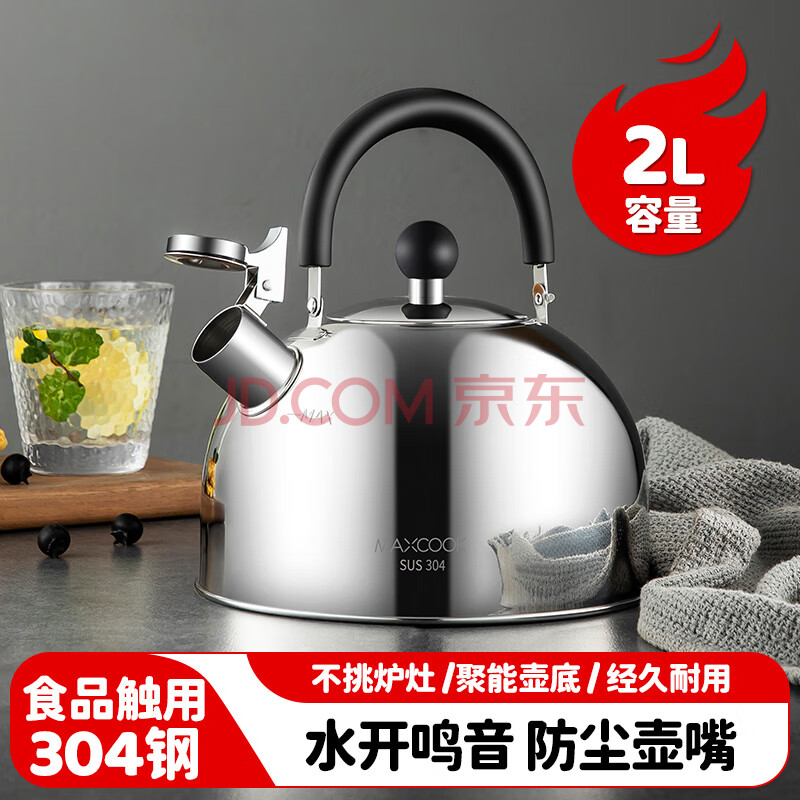 商品相册:美厨(MAXCOOK)烧水壶304不锈钢响水壶 2L加厚鸣音锌合金壶嘴 电磁炉通用MCH5497第