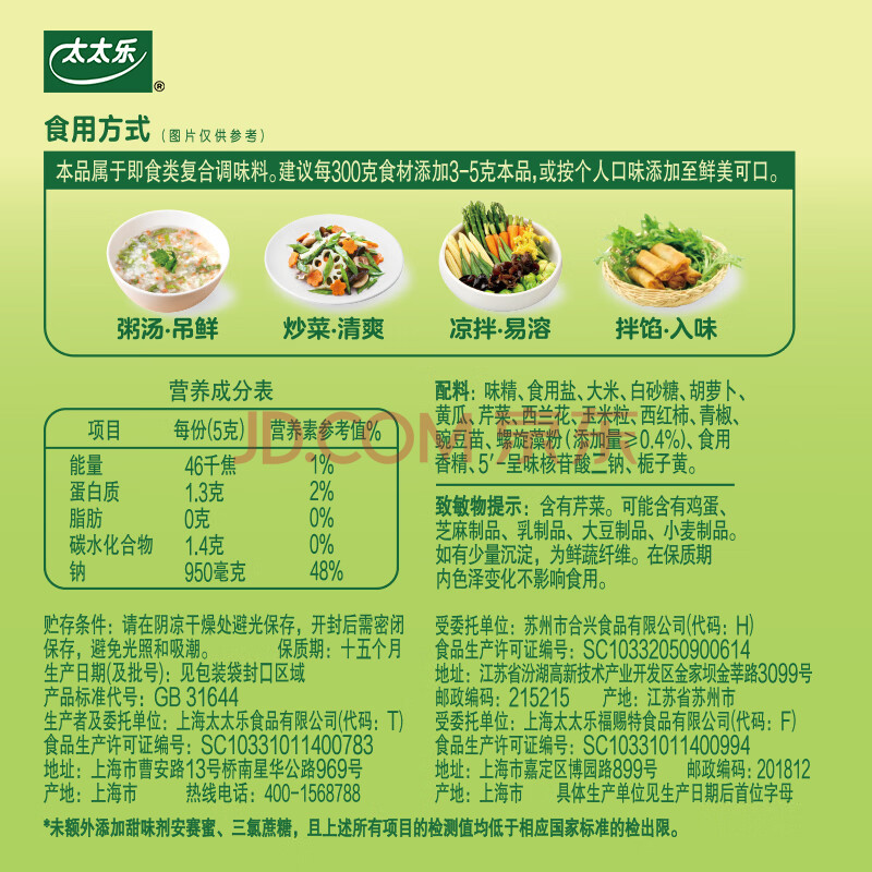 商品相册:太太乐鸡精 蔬之鲜 调味料 复合调味料 素食提鲜 100g第