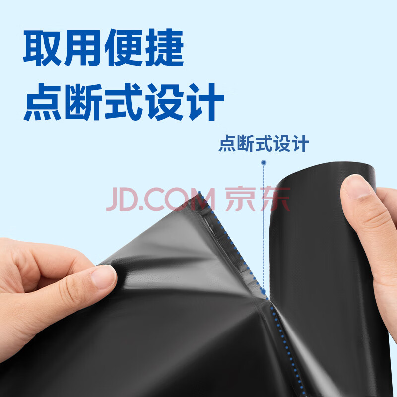 商品相册:得力(deli)平口垃圾袋3卷(90只)点段式办公生活宿舍家用加厚不易破垃圾袋45*55cm 垃圾分类 黑色33067第1张/共5